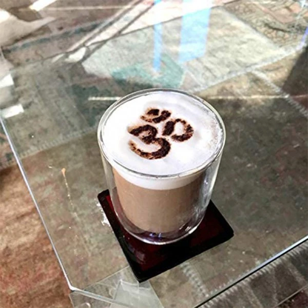 Set de 12 pochoirs ronds de diamètre 8,5 cm pour personnaliser ses boissons et autres préparation culinaires. Thème Feel good et Yoga.