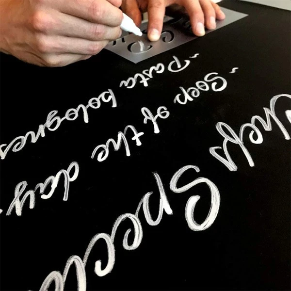 Fabriqués en Mylar semi-transparent, ces pochoirs de 0,3 mm d’épaisseur sont flexibles et résistants. Ils sont également réutilisables.