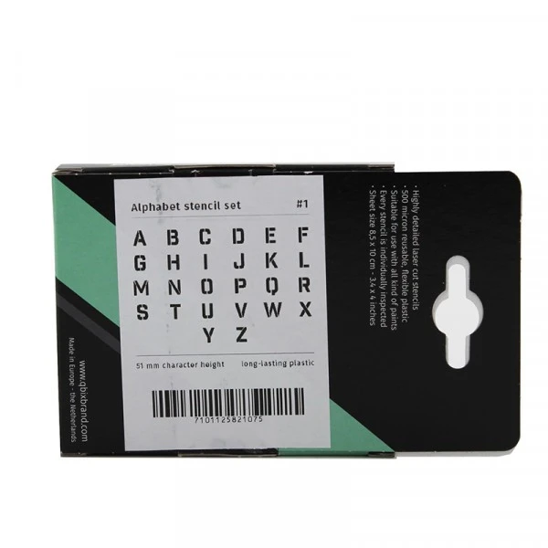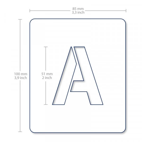 Dimensions de chaque pochoir10 x 8,5 cm. Hauteur des lettres5,1 cm.