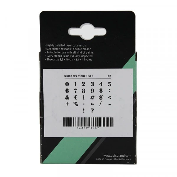 Données techniques pour Set de pochoirs 5 cm – Chiffres et caractères spéciaux n 2 – Qbix