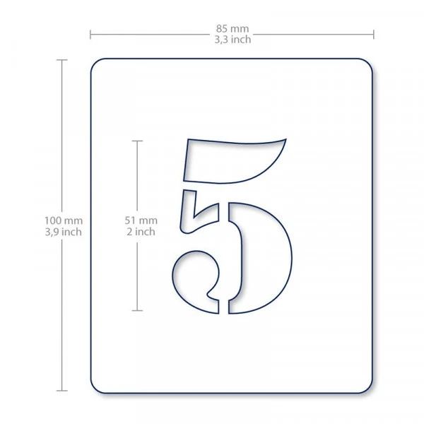 Dimensions de chaque pochoir10 x 8,5 cm. Hauteur des chiffres et caractères5,1 cm.