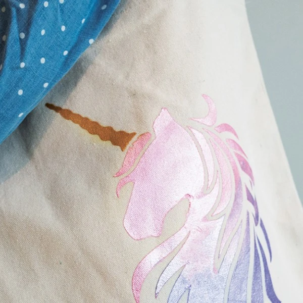 Utilisez votre peinture Izink Pearly avec un pochoir pour créer un superbe motif nacré sur un tote bag ou n’importe quel objet à décorer. Lancez-vous c’est facile et le résultat est vraiment très beau!