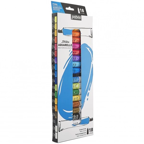 Description de Assortiment Peinture Aquarelle Pébéo – Studio Aquarelle 12 ml – 18 tubes