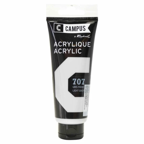 Peinture acrylique gris froid d’une contenance de 100 ml, elle est idéal aussi bien en épaisseur qu’en glacis et possède une très bonne résistance à la lumière . Dilutioneau, médiums acrylique en fonction de l’effet désiré. Nettoyage des outilseau chaude. SupportsToiles, carton, papier toilé, bois. Séchagesec au toucher 1h selon l’épaisseur. Séchage définitif48h selon l’épaisseur. La peinture acrylique se compose de 2 éléments principauxun mélange de pigments et le liant (une émulsion aqueuse de résines synthétiques polyacryliques ou polyvinyliques d’origine minérale, organique, ou synthétique). À cette pâte s’ajoute une charge afin d’en augmenter le volume, la consistance ou l’opacité. La peinture acrylique est très facile à préparer, et simple à appliquer sur tous les types de surface. De plus, elle est facilement miscible, très solide, indélébile, dégage une très faible odeur, et sèche en quelques minutes, ce qui permet de superposer rapidement les différentes couches. C’est cette dernière caractéristique qui la différencie de la peinture à l’huile, très lente à sécher mais qui permet les fondus et les repentirs.