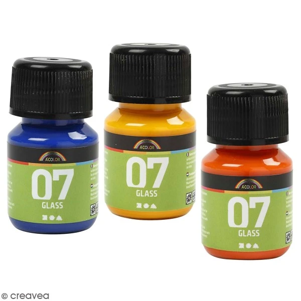 La peinture A Color Glass est une peinture sans cuisson. Elle est transparente et brillante et elle a une composition à base d’eau. La peinture A Color Glass a une très bonne adhérence sur le verre, la porcelaine, la terre cuite, le plastique, etc.