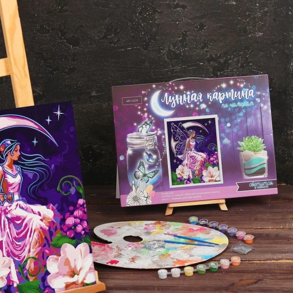 Description de Fée de la Lune de la Peinture Par numéro Kit de Bricolage, Lueur Dans l’Obscurité Ensemble, Paillett