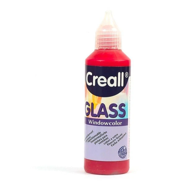 Peinture repositionnable pour vitres Creall Glass – rouge bordeaux. Tracez les lignes avec Creall-Glass contour sur une plaque de verre ou de plastique. Laissez sécher 2 heures. Ensuite vous pouvez colorer votre motif à l’aide des flacons peinture. Après 24 heures (sans chauffer) le motif peut être retirer et coller sur une surface lissela fenêtre ou un miroir par exemple.