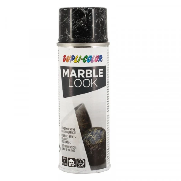 Description de Bombe de peinture – Effet marbre noir veines blanches – Décoration – Duplicolor – 200 ml
