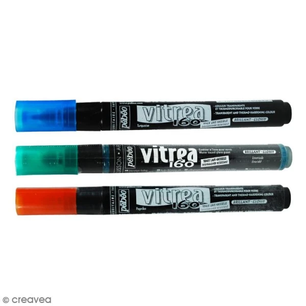 Le feutre peinture encre brillant V160 de Pébéo va vous permettre de décorer facilement tous vos verres avec une qualité professionnelle ! Que ce soit pour un événement ou pour le plaisir, vous apprécierez de pouvoir mélanger la peinture Vitrea encre Pébéo avec tous les autres produits de la gamme V160. Toutes ces peintures ont des couleurs lumineuses et transparentes à la tenue éternelle. La peinture du feutre brillant pour verre peut passer au lave-vaisselle après cuisson !