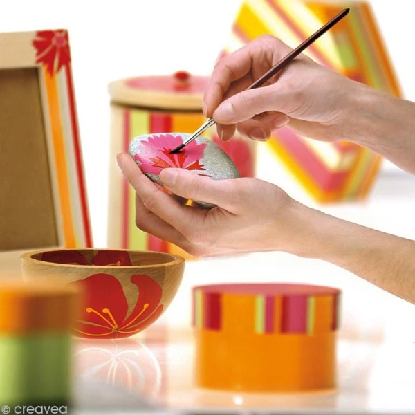 La peinture DecoCrème Mat est une peinture acrylique polyvalente fabriquée à base d’eau. Parfaites pour les loisirs créatifs, ces peintures pourront s’utiliser sur les matériaux de votre choix et se prêteront à toutes les techniques. En effet, vous pourrez appliquer votre peinture DecoCrème sur une multitude de supportsbois, plâtre, terre cuite, métal, pâte à sel, carton, pierre, papier, etc. Pour cela, vous pouvez utiliser un pinceau sec, une éponge, un pochoir, etc. Cette peinture est idéale pour les techniques modernes comme ancienne (vintage).