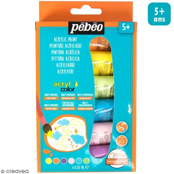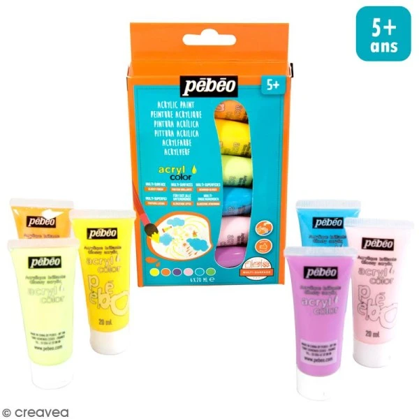 Description de Peinture Acrylique enfant Acrylcolor – Couleurs pastel -20 ml – 6 tubes