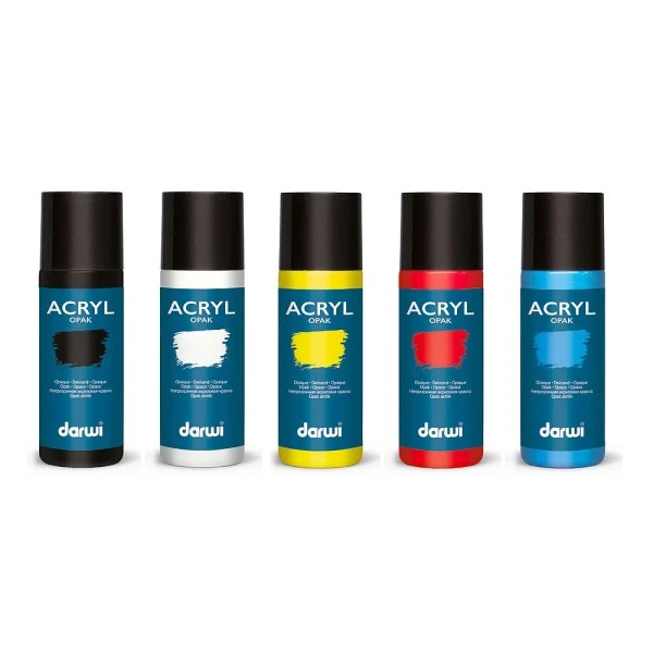 Description de Lot de 5 peintures crémeuses acryliques, Darwi Opak, 5 x 80 ml, couleurs primaires opaques