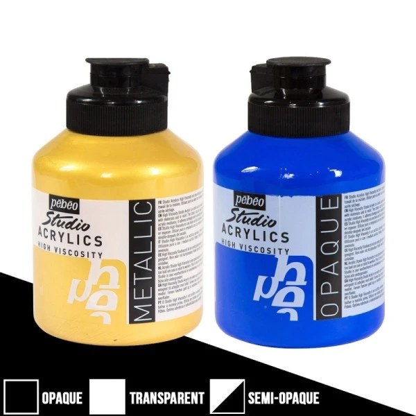 La peinture acrylique Pébéo Studio High Viscosity 500 ml, est une peinture acrylique de couleur vive et profonde, à l’aspect mat et satiné que vous retrouvez en formule opaque, transparente ou semi opaque.