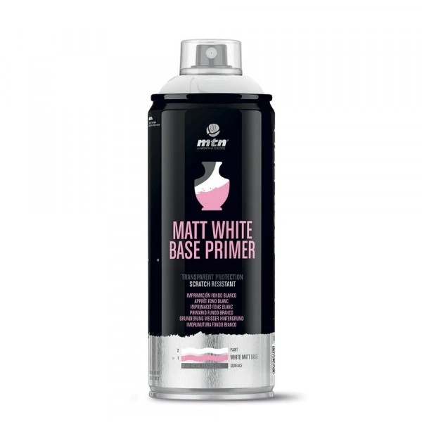 Cet apprêt fond blanc à forte adhérence fait parti intégrante de la nouvelle référence PRO de la marque MTN. Sa contenance est de 400ml. Ce produit s’utilise en sous-couche de manière à couvrir uniformément la surface à peindre afin d’améliorer la fixation et de renforcer les couleurs passées par dessus.