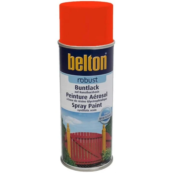 La bombe de peinture aérosol Belton Robust se décline dans un assortiment de plusieurs coloris. Une bombe contient 400ml de peinture.