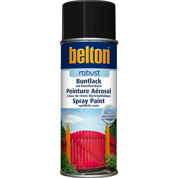 La bombe de peinture aérosol Belton Robust se décline dans un assortiment de plusieurs coloris. Une bombe contient 400ml de peinture.