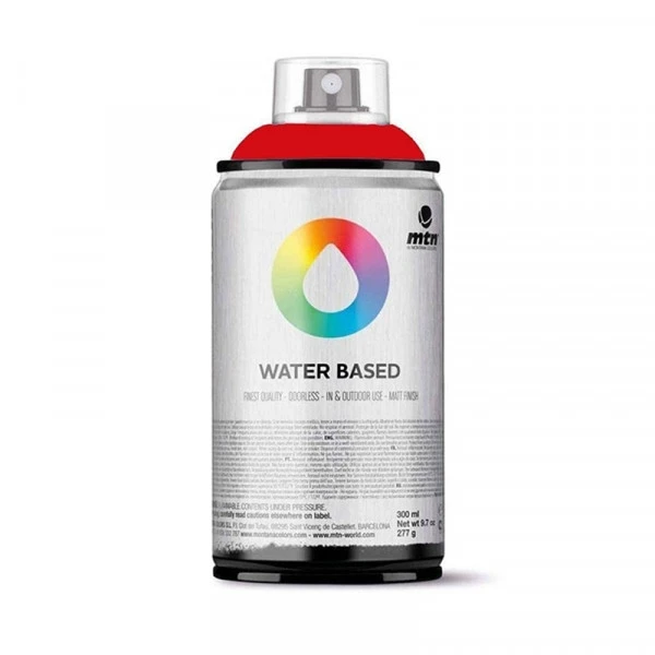 - La MTN Water Based 300 est la première bombe de peinture destinées aux artistes, dont les solvants à base de pétrole sont remplacés par de l’eau. La formule combine des résines hydrosolubles à très faible odeur, avec des pigments de très haute qualité. Le gaz propulseur utilisé est l’éther méthylique, également utilisé dans la cosmétique.