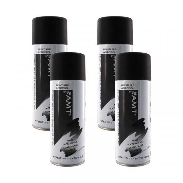 Description de Lot de 4 bombes de peinture noir mat 330ml – Amt