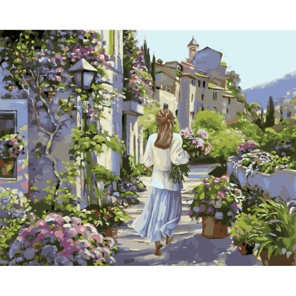 Description de Kit Peinture par Numéros Wizardi Fille aux Fleurs 40×50 cm J014