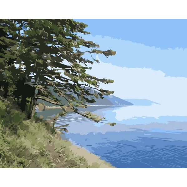 Description de Kit Peinture par Numéros Wizardi Lac Baïkal, Listvianka 40×50 cm A025