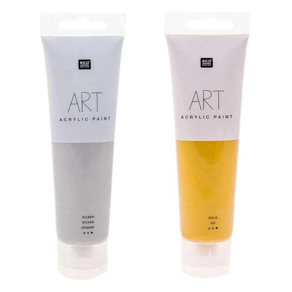 Description de 2 Tubes De Peinture Acrylique 100 Ml – Doré-Argenté
