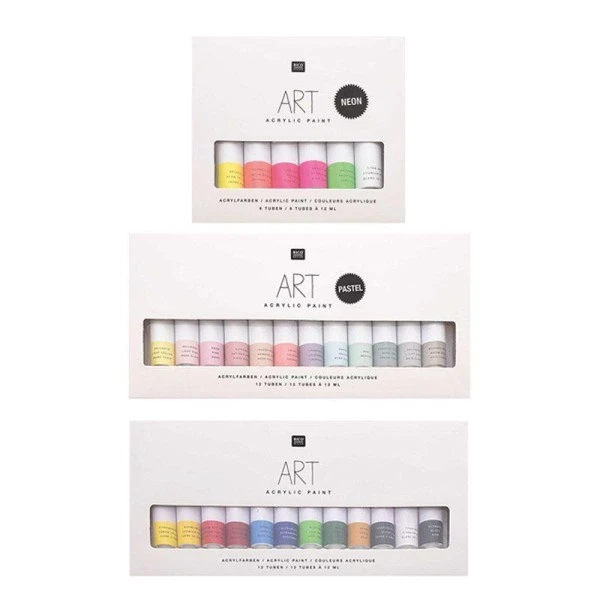 Description de Set peinture acrylique – 12 Pastel 12 ml + 6 Fluo 12 ml + 12 Basique 12 ml