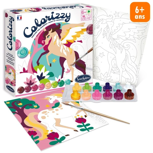 Découvrez ce kit créatif peinture Colorizzy, un coffret créatif pour les enfants à partir de 6 ans qui leur permettra de s’initier à la peinture grâce à la technique de la peinture par numéros. Les enfants pourront profiter d’un agréable moment créatif pour peindre deux tableaux de peinture par numéros et donner vie à de superbes Licornes.
