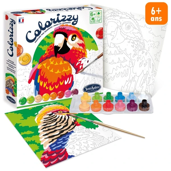 Découvrez ce kit créatif peinture Colorizzy, un coffret créatif pour les enfants à partir de 6 ans qui leur permettra de s’initier à la peinture grâce à la technique de la peinture par numéros. Les enfants pourront profiter d’un agréable moment créatif pour peindre deux tableaux de peinture par numéros et donner vie à de superbes Perroquets.