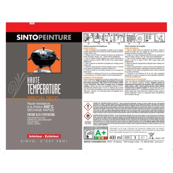 Données techniques pour Bombe de peinture haute température alu – Sinto