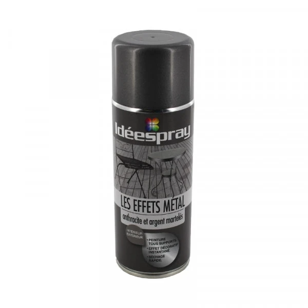 Description de Bombe de peinture Idéespray – anthracite et argent martelés – Sinto – 400ml