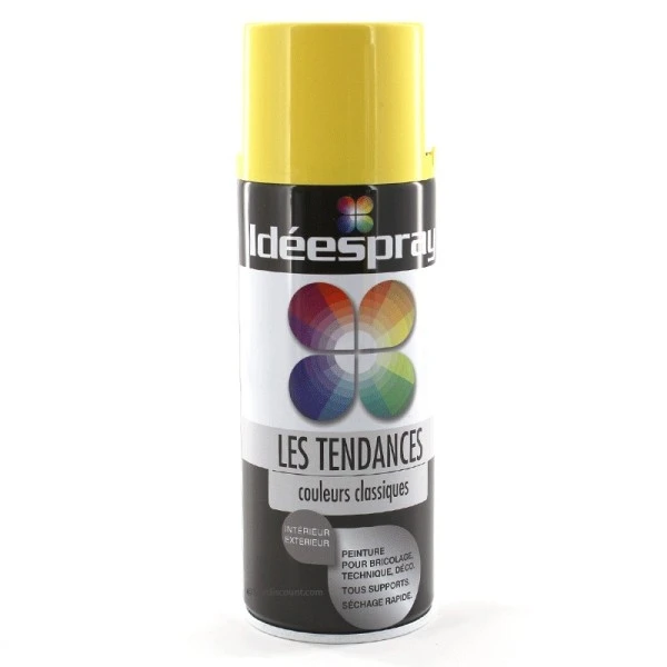 Chaque bombe a une contenance de 400 ml. Les aérosols Idéespray résistent à la rouille et aux effets du temps. Les teintes “”les tendances et modernes”” sont constituées d’acrylique permettant un rendu brillant et belle couvrance. La peinture adhère parfaitement sur le bois, le métal, le plastique ou le verre. De plus, le temps de séchage est rapide.