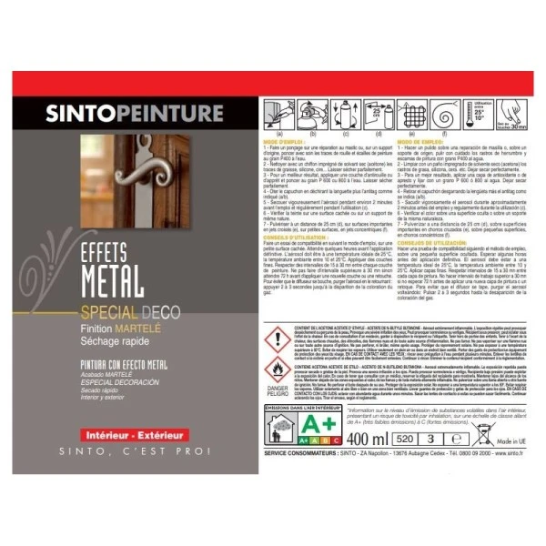 Données techniques pour Bombe de peinture – vernis métal argent – Sinto
